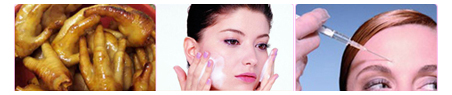A 皮肤:皮肤的生长、修复和营养都离不开胶原蛋白。胶原蛋白使细胞变得丰满,从而使肌肤充盈,保持皮肤弹性与润泽,维持皮肤细腻光滑。皮肤健康的两大关健抗皱与保湿都与胶原蛋白有关。 B 头发:头发的健康关健在于头发的基础头皮皮下组织的营养,位于真皮原层胶蛋白是表皮层及表皮附属物的营养供应站,表皮附属物主要是毛发与指甲。缺乏胶原蛋白,头发干燥分叉,指甲容易断裂、灰暗无光泽。 C 骨骼:骨骼中有机物的70%-80%是胶原蛋白,骨骼生成时,首先必须合成充足的胶原蛋白纤维来组成骨骼的框架。因此,有人称胶原蛋白为骨骼中的骨骼。 D 肌肉:胶原蛋白虽然不是肌肉组织的主要组成物质,但是胶原蛋白与肌肉生长有着密切关系。对于处于生长阶段的青少年来说,补充胶原蛋白能够促进生长激素分泌以及肌肉生长。而对于想保持体形的成年人,塑造结实健美的肌肉也需要补充胶原蛋白。 E 丰胸:胶原蛋白对丰胸的作用早已为人们所熟知乳房主要由结缔组织和脂肪组织构成,而挺拔丰满的乳房很大程度上依靠结缔组织的承托,胶原蛋白是结缔组织的主要成分是承托人体曲线,体现挺拔体态的物质基础。 F 减肥:减肥需要燃烧脂肪(分解代谢),而水解胶原蛋白能使这种分解代谢过程增加和延长,燃烧更多的脂肪从而达到减肥的目的。因此服用水解胶原蛋白睡觉就能减肥,轻松减肥的梦想变成了现实。